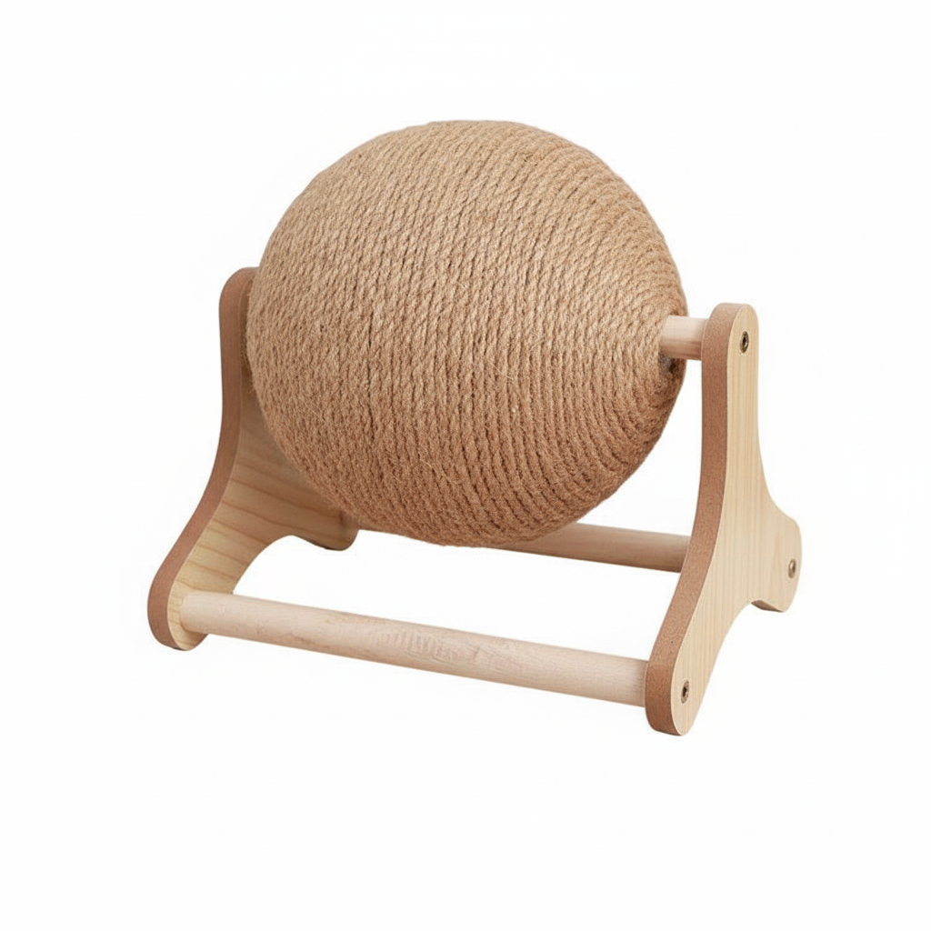 Kattleksak Klösboll – Sisal Repboll med Träställ, Hållbar Klösleksak för Katter