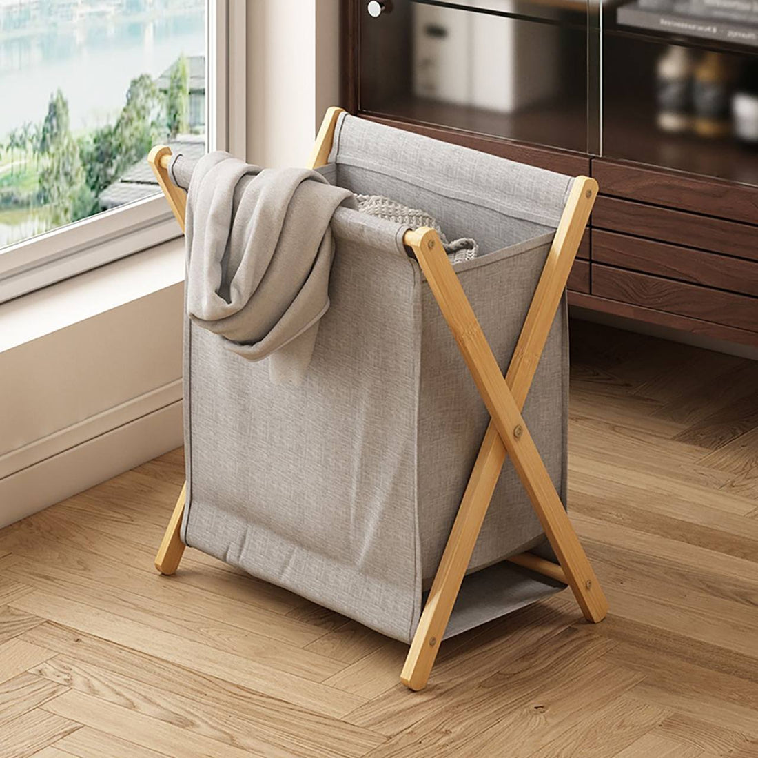 Hopfällbar tvätt- och förvaringskorg i bambu och linne