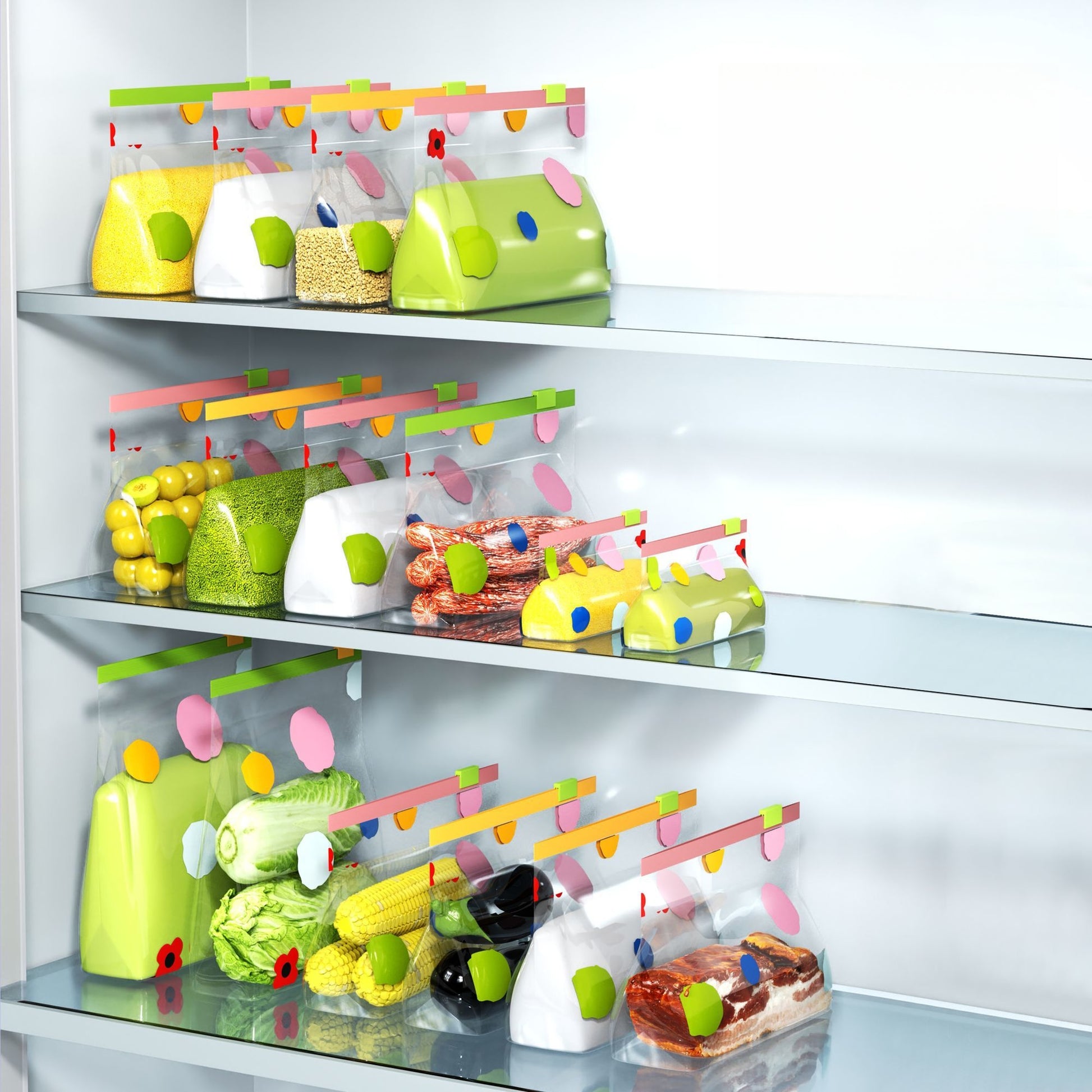 Livsmedelsgodkänt material: Tillverkade av säker PE-plast, redo att användas direkt utan att behöva rengöras. Perfekt för kyl, frys och skafferi.