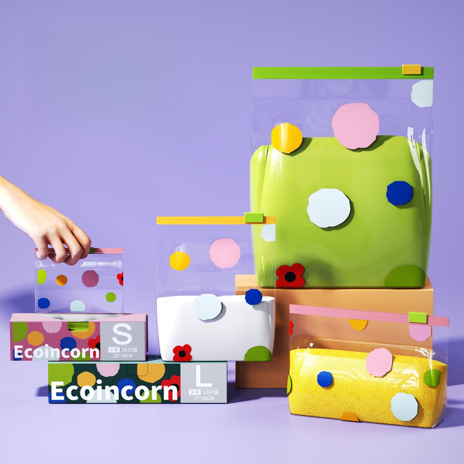 Återförslutningsbara förvaringspåsar med ziplock (Dispenserbox)
