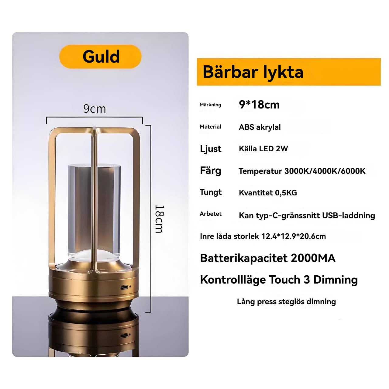 Bärbar LED-bordslampa i aluminium – Touchstyrning & 3 färglägen