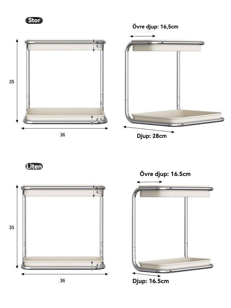 Dubbel nivådesign – dubbla förvaringsytor som rymmer fler saker, perfekt för kök, badrum, sovrum och vardagsrum.