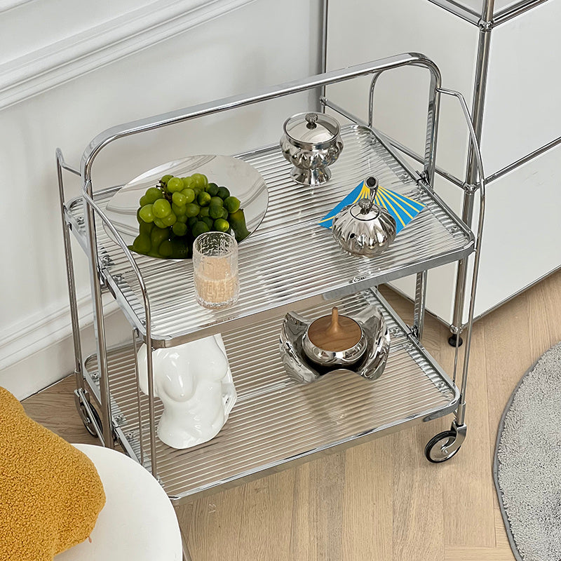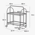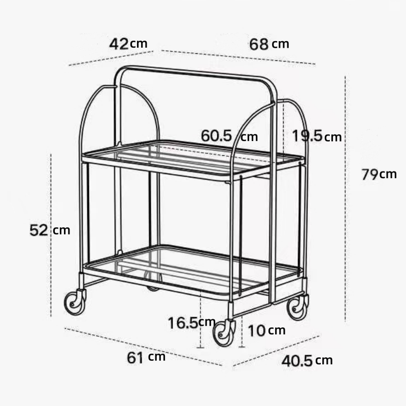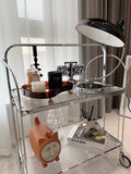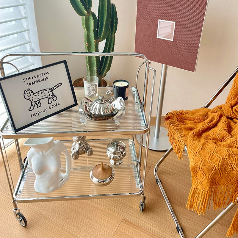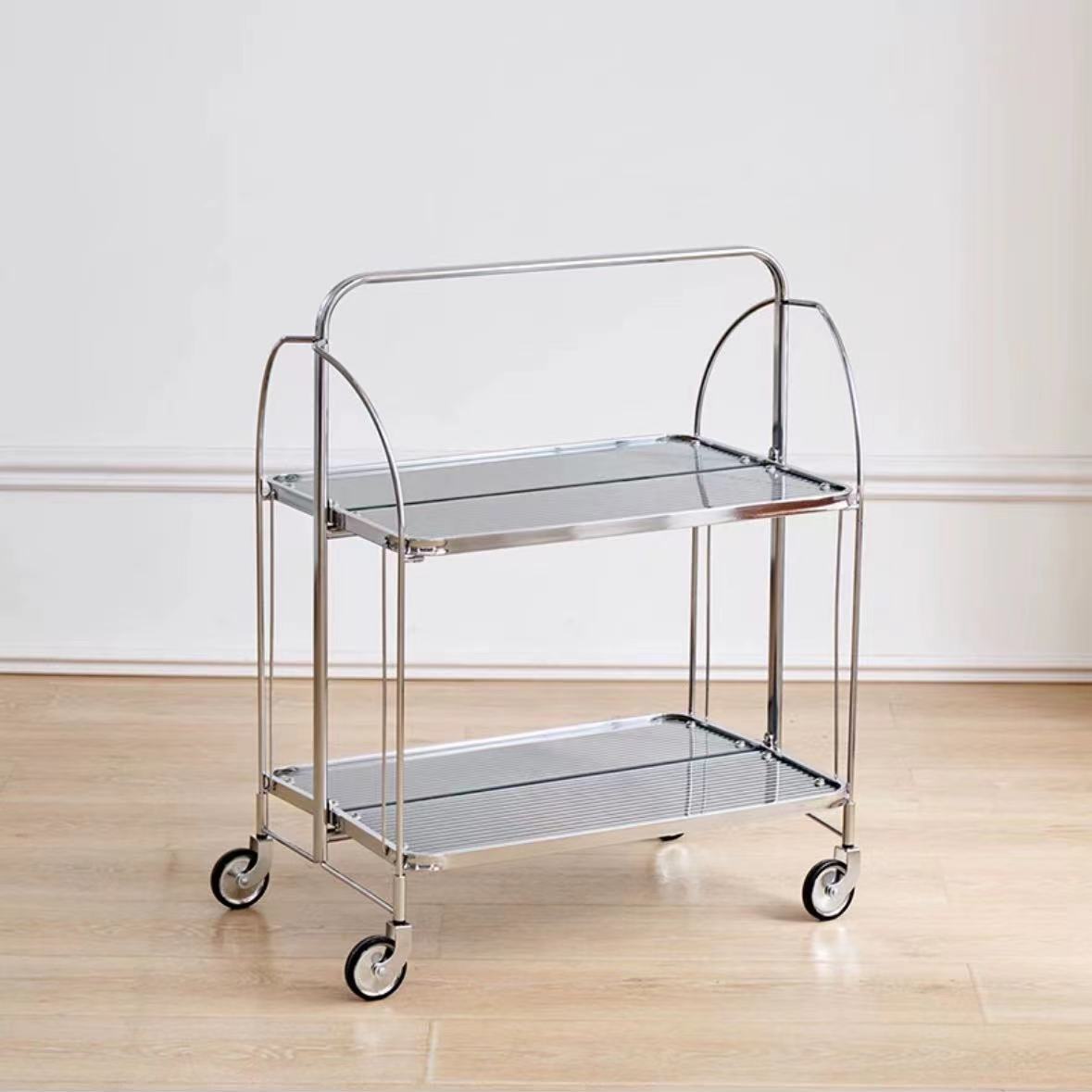 Denna vintage-inspirerade fällbara glasvagn kombinerar estetik och funktionalitet. Tillverkad av härdat glas och en förkromad metallram, vilket gör den stabil och hållbar med en stilren design. Vagnen är utrustad med 360° universella hjul med broms, vilket gör den både lätt att flytta och enkel att fixera på plats. Perfekt som serveringsvagn, sidobord i vardagsrummet eller som en praktisk förvaringslösning. Finns i tre olika glasutföranden för att passa olika inredningsstilar.