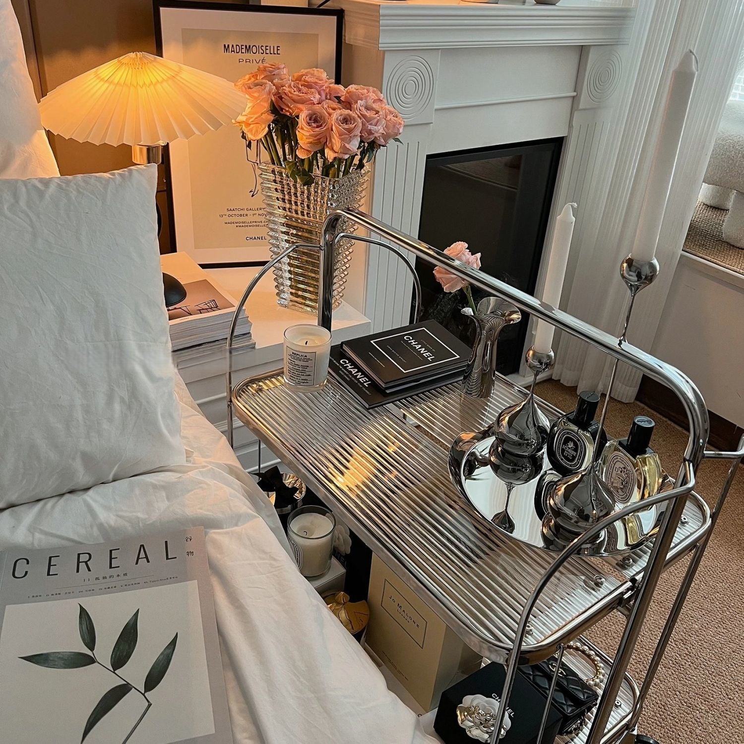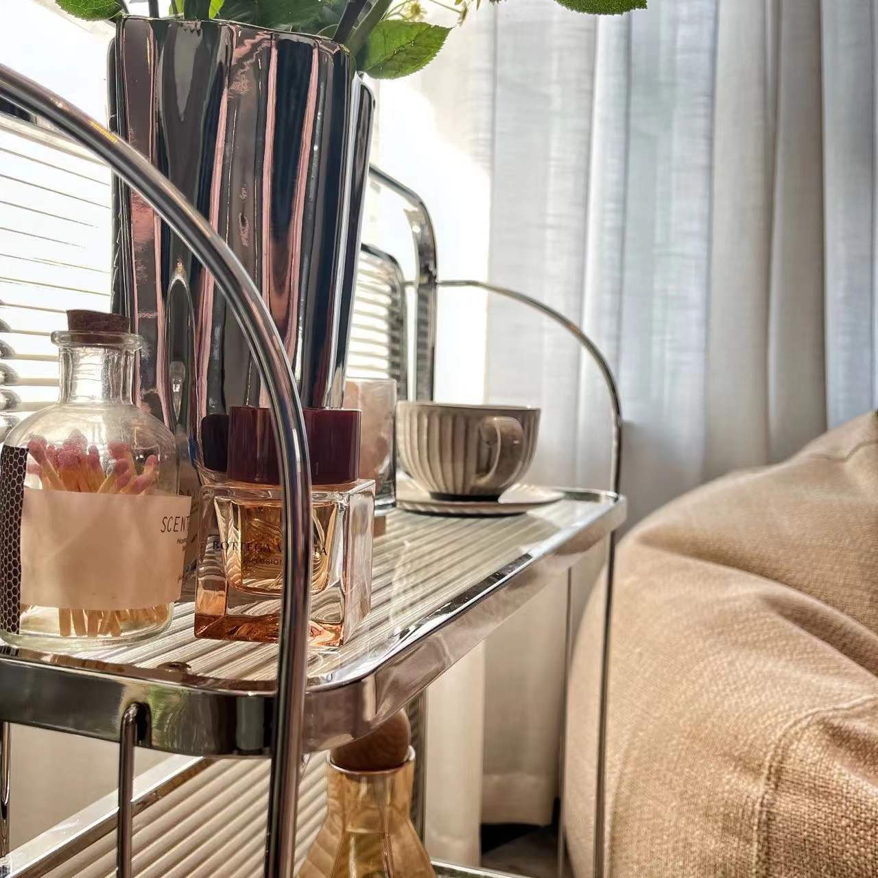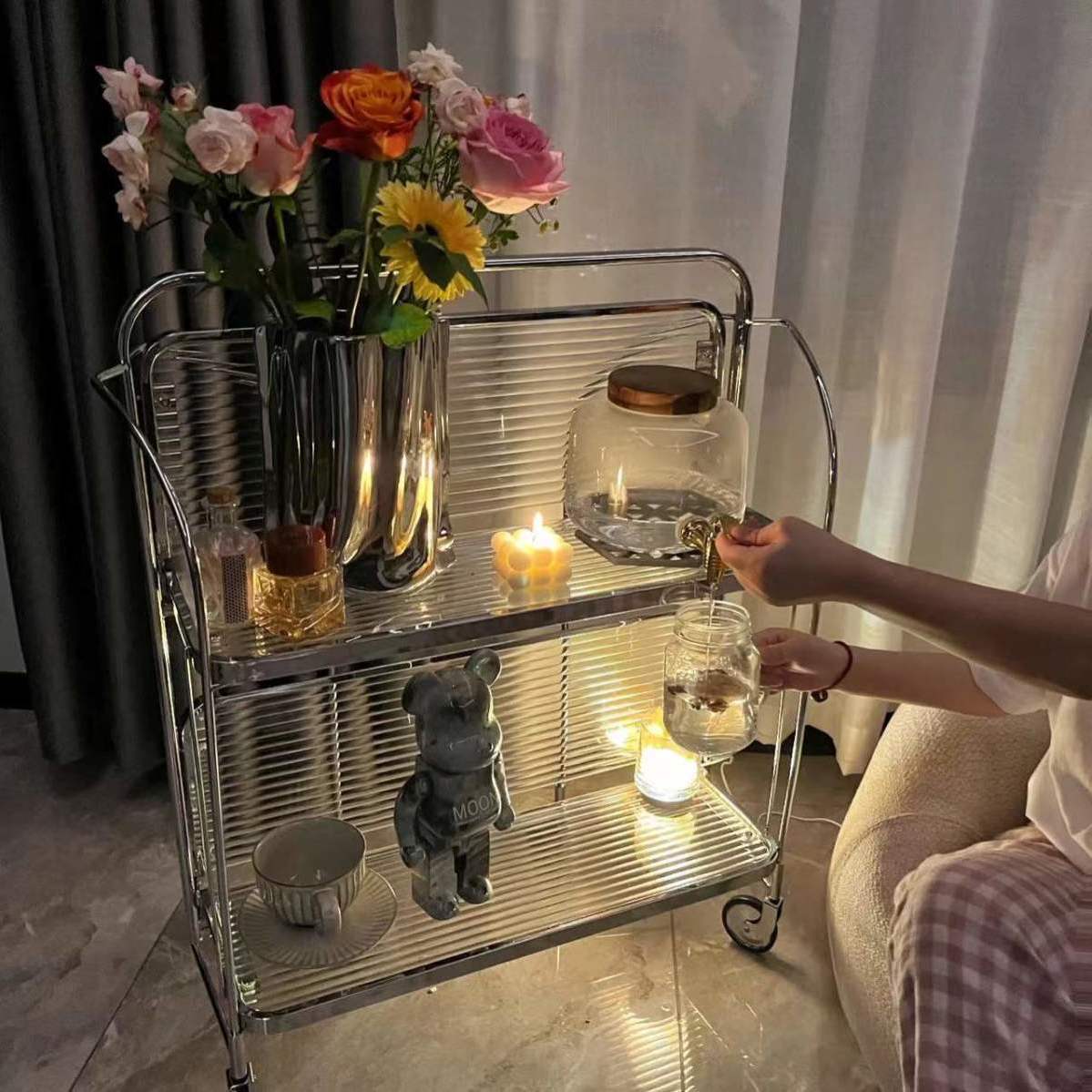 Denna vintage-inspirerade fällbara glasvagn kombinerar estetik och funktionalitet. Tillverkad av härdat glas och en förkromad metallram, vilket gör den stabil och hållbar med en stilren design. Vagnen är utrustad med 360° universella hjul med broms, vilket gör den både lätt att flytta och enkel att fixera på plats. Perfekt som serveringsvagn, sidobord i vardagsrummet eller som en praktisk förvaringslösning. Finns i tre olika glasutföranden för att passa olika inredningsstilar.