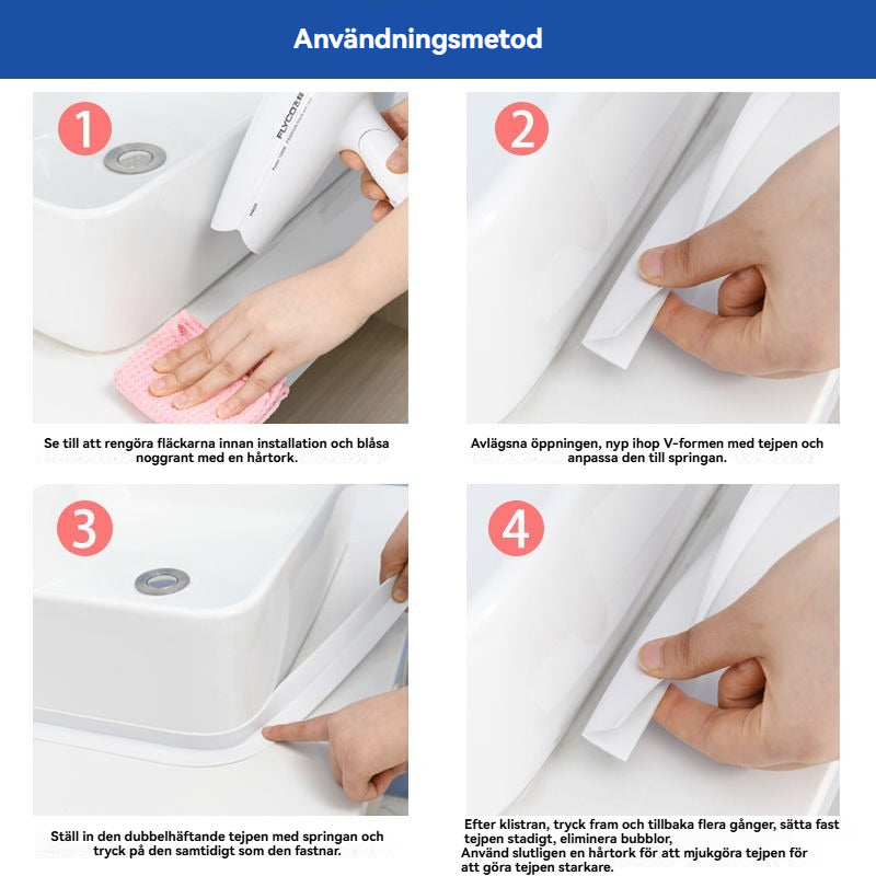 Vattentät & Mögelskyddande: Håller effektivt fukt, smuts och mögel borta från springor och hörn, vilket gör städningen enklare.