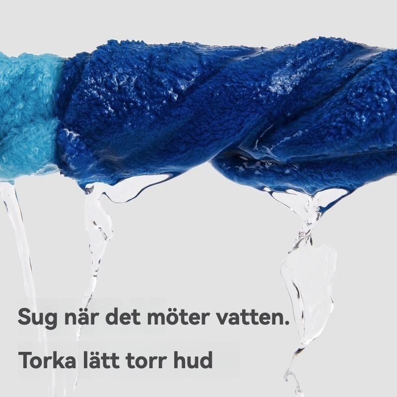 Superabsorberande: Tillverkad av fin mikrofiber som snabbt suger upp vatten och torkar fort.