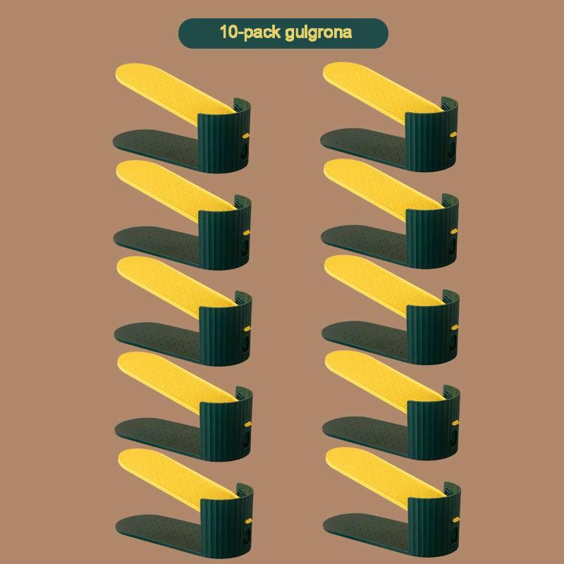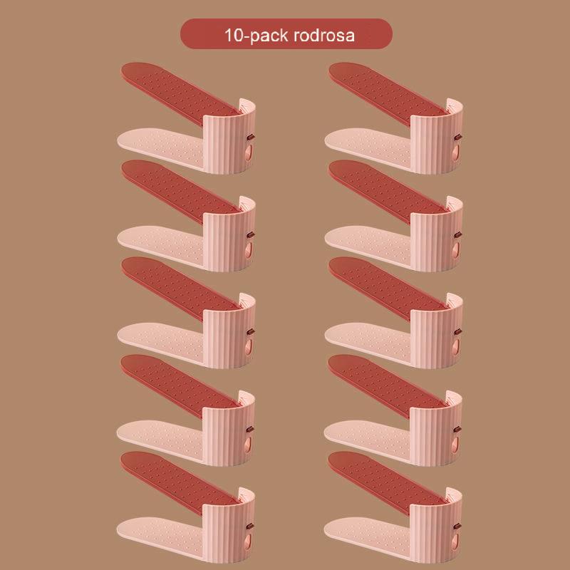 Håll dina skor organiserade och maximera utrymmet med vår Justerbara & Delbara Skohållare. Denna innovativa design låter dig justera höjden efter typ av sko, och dess delbara konstruktion gör den enkel att montera och anpassa.