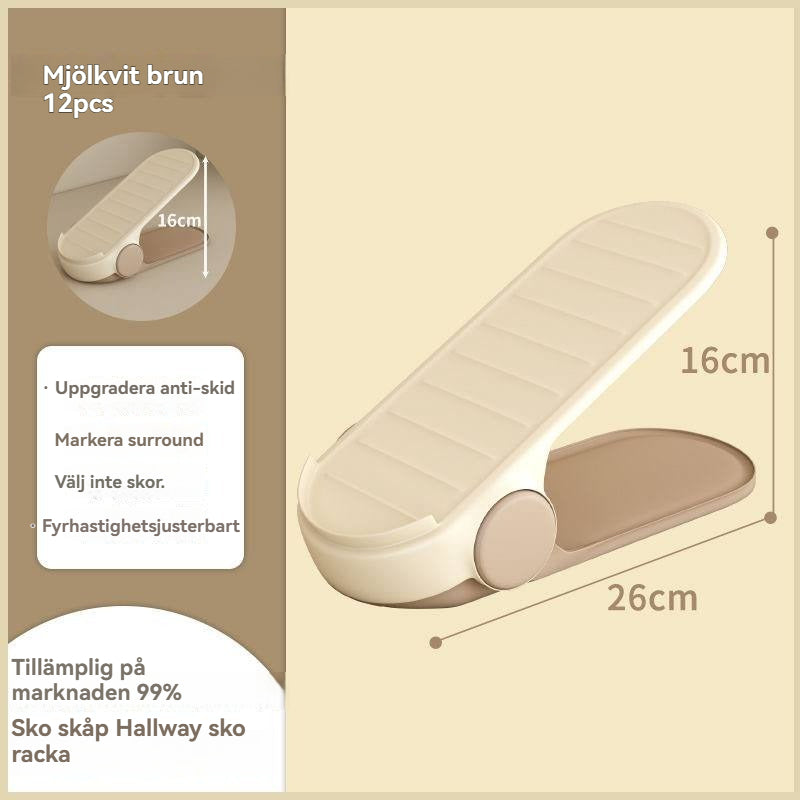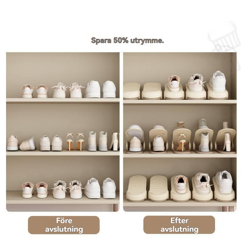 Platsbesparande: Ökar utrymmeseffektiviteten i skoskåpet och kan spara upp till 50% plats.