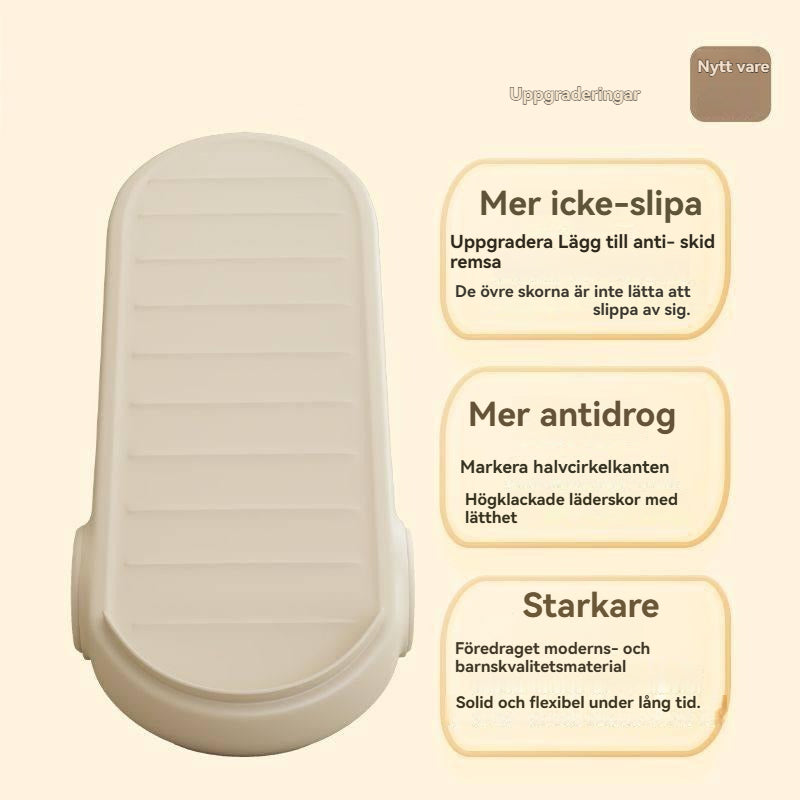 Halkfri design: Yta med antiglid-rillor gör att den övre skon inte glider av.