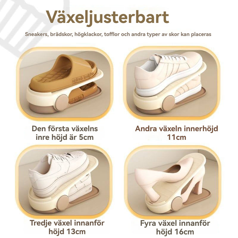 Fyra justerbara höjder: Passar sneakers, loafers, högklackade skor, sandaler och mer.