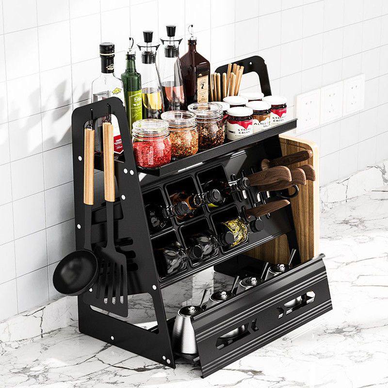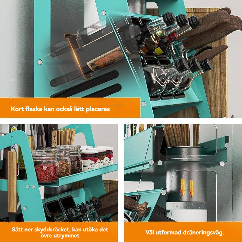 Hög kapacitet – Kan bära flera flaskor, kryddburkar och köksredskap samtidigt.