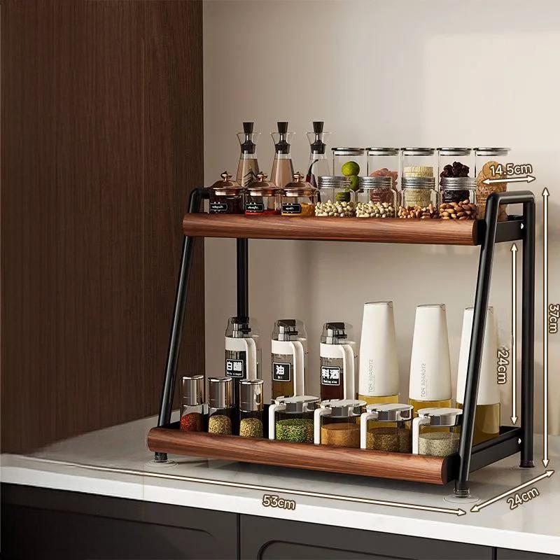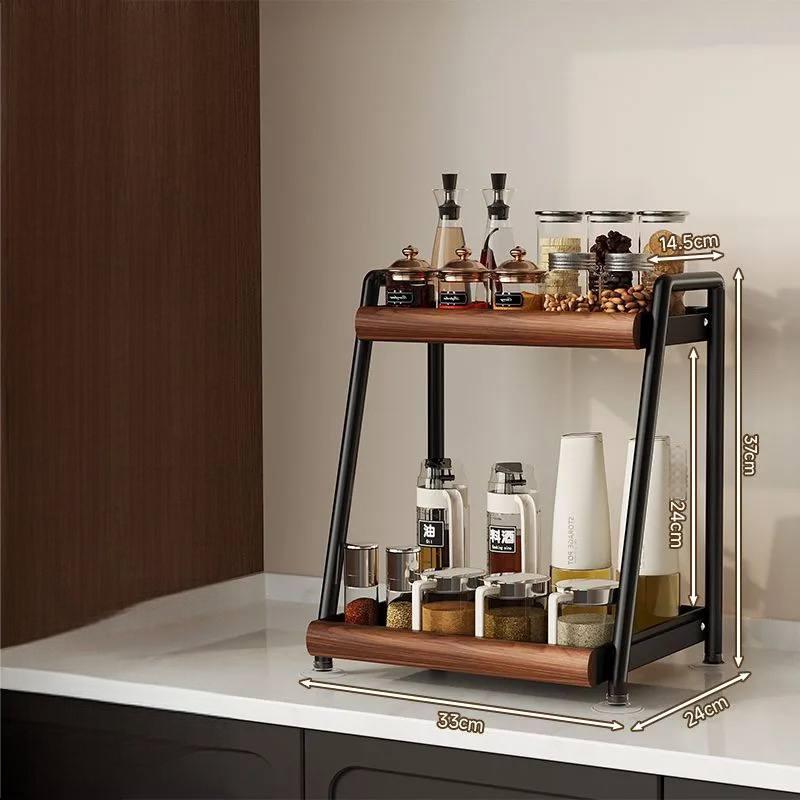 Miljövänlig tvåvånings hylla i massivt trä – stilren förvaring för kök och hem