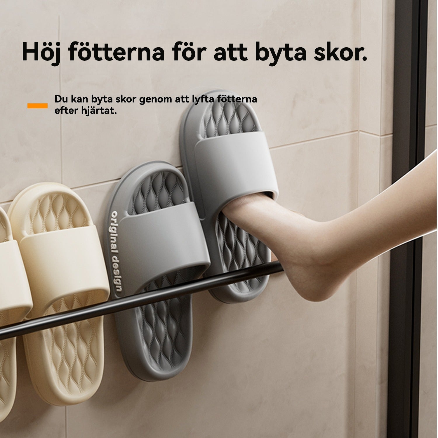Multifunktionell & Platsbesparande: En smart allt-i-ett-lösning. Använd den som en klassisk handdukshängare eller som en praktisk och snygg förvaring för dina tofflor.