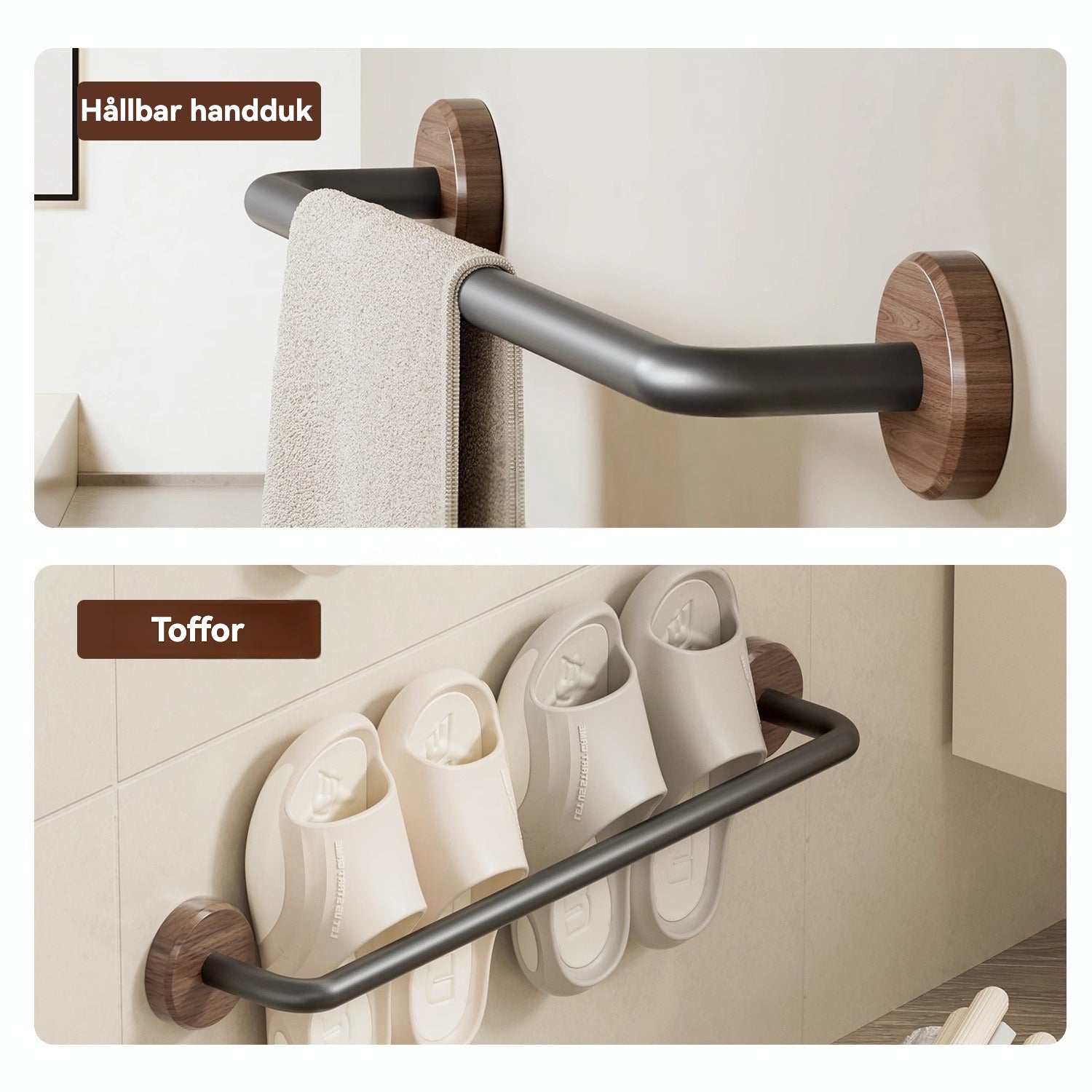 Minimalistisk handdukshängare i valnöt och metall (borrfri)