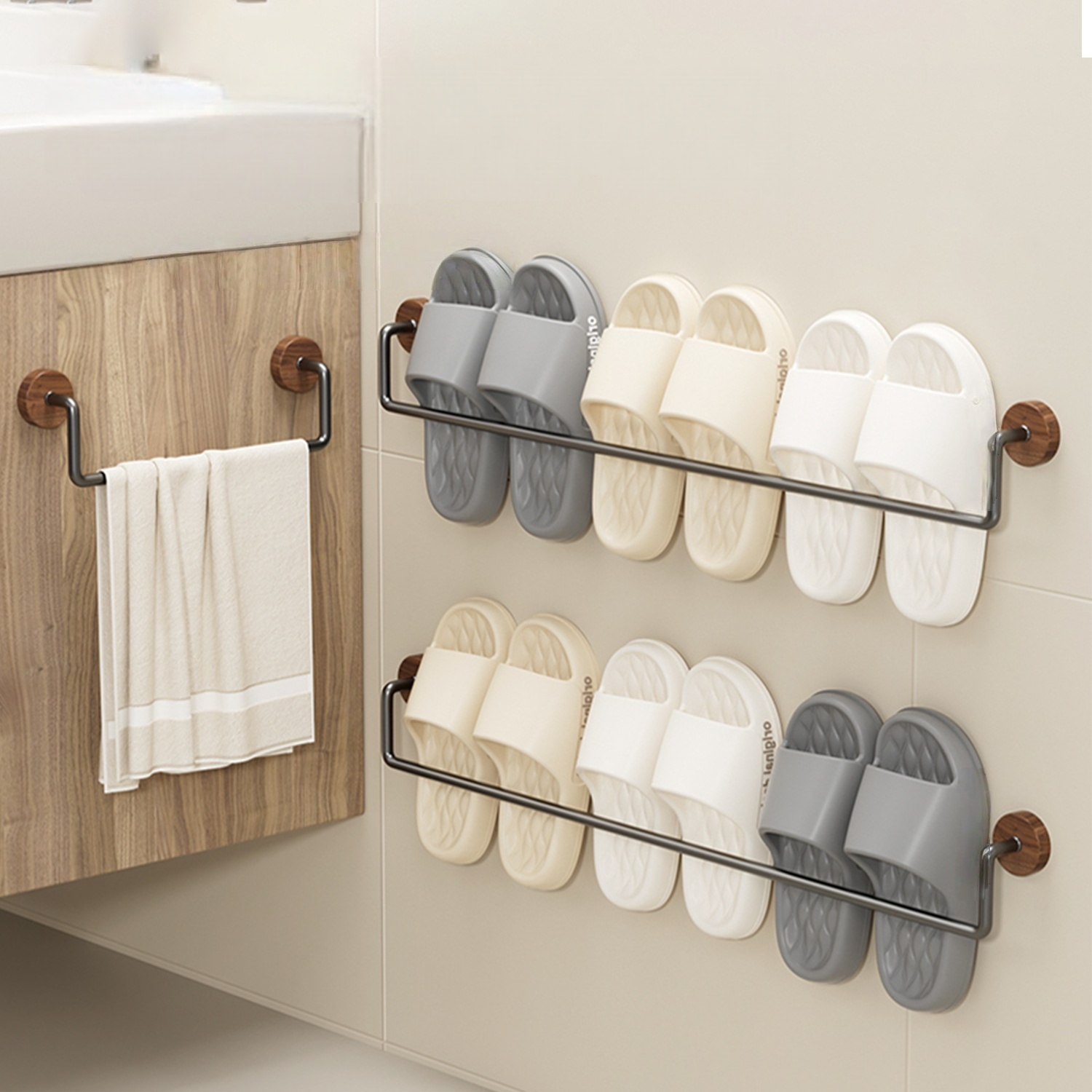 Multifunktionell & Platsbesparande: En smart allt-i-ett-lösning. Använd den som en klassisk handdukshängare eller som en praktisk och snygg förvaring för dina tofflor.