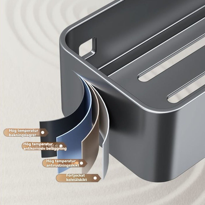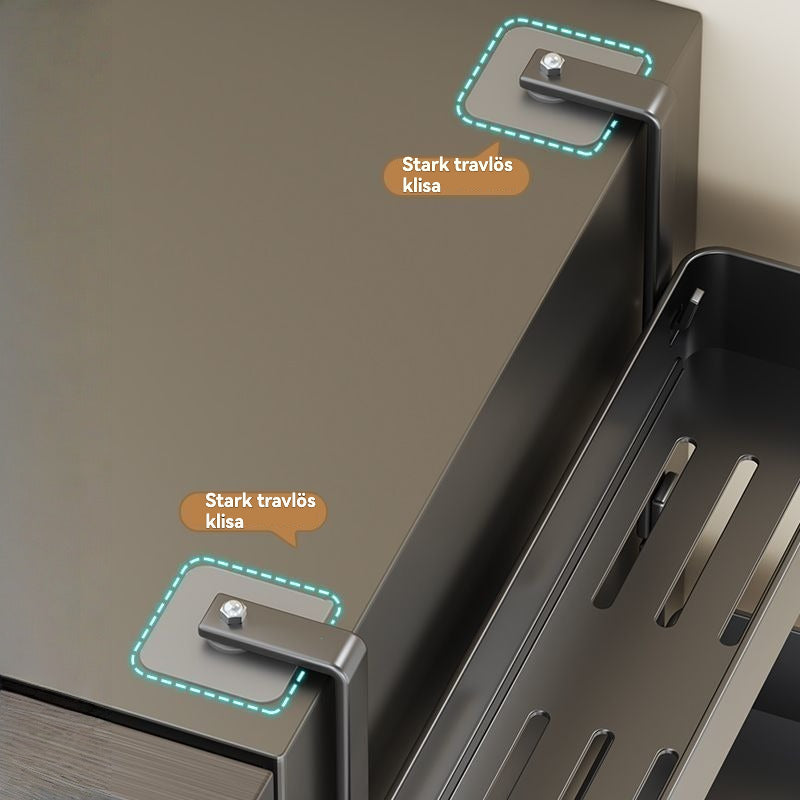 Maximera ditt köksutrymme med denna multifunktionella förvaringshylla, designad för att hängas på sidan av kylskåpet eller på en vägg. Den robusta konstruktionen och den enkla, borrfria installationen gör den till den perfekta lösningen för att hålla kryddor, oljor och hushållspapper organiserade och inom räckhåll.