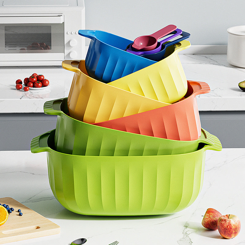 Stapelbart köksset i 9 delar – Skålar, durkslag & måttsatser