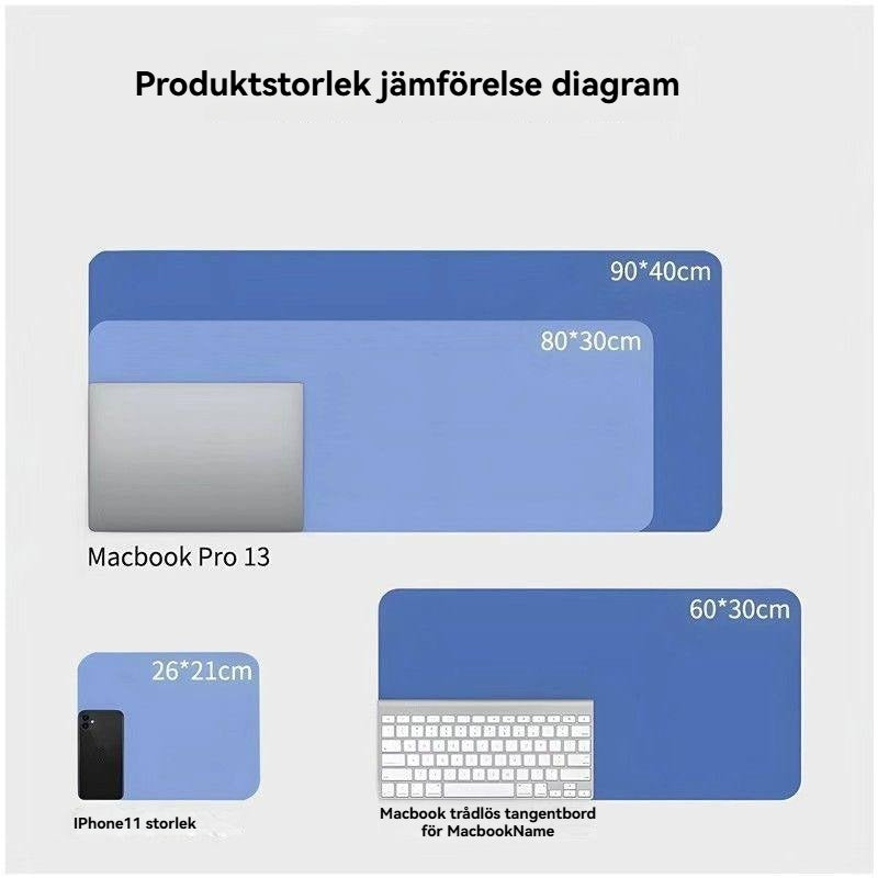 ✅ Olika storlekar att välja på: 90×40 cm, 80×30 cm, 60×30 cm, 26×21 cm – passar både laptop, tangentbord och mus.