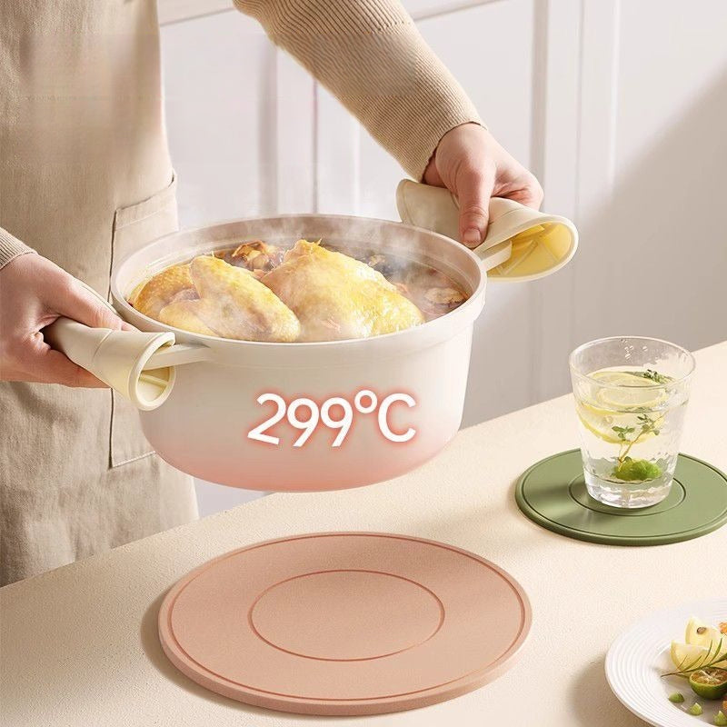 Tål hög värme: Ställ heta kastruller direkt på underlägget. Värmebeständigt upp till 299°C för att effektivt skydda din bordsyta.