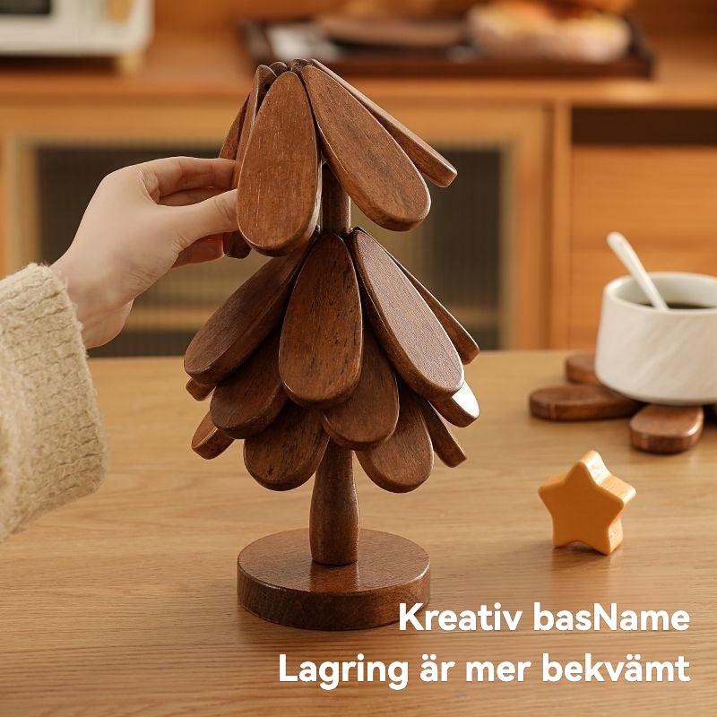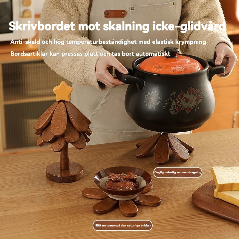 En charmig juldekoration som med ett enkelt handgrepp förvandlas till ett praktiskt grytunderlägg. Tillverkad i vacker bambu skyddar den ditt bord från varma kastruller, formar och tekannor. När den inte används står den stolt som en liten julgran – en perfekt och funktionell inredningsdetalj under vinterhalvåret.