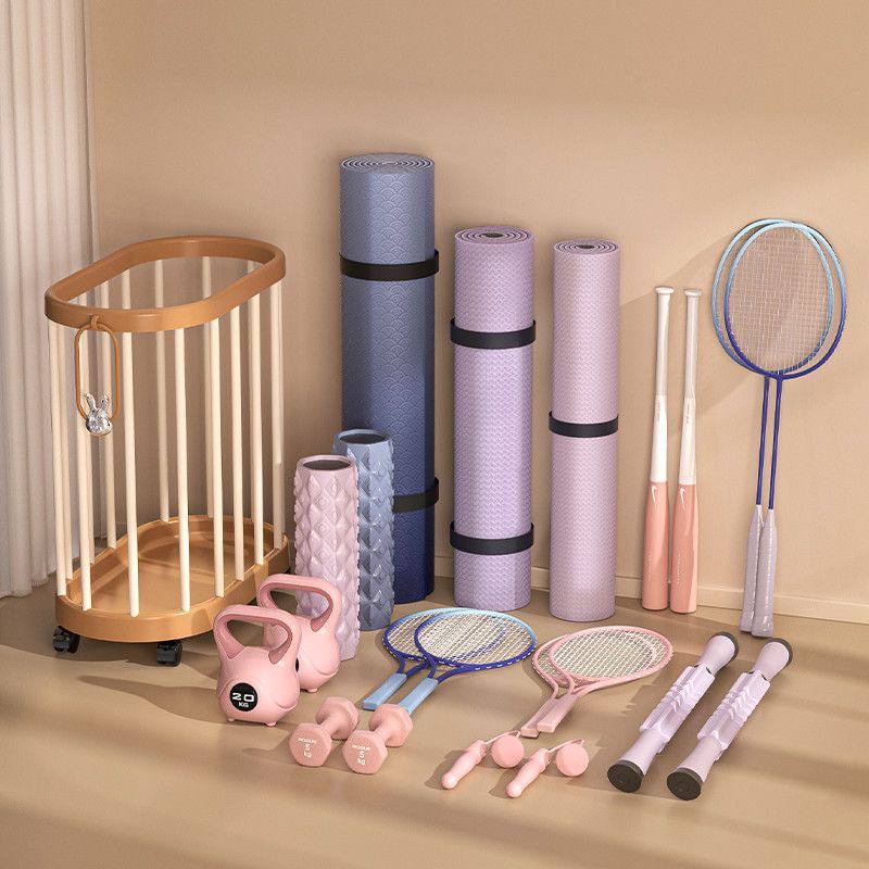 Organiserad förvaring: Den stående strukturen gör det enkelt att sortera olika träningsredskap för snabb åtkomst.
