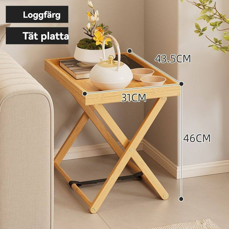 Ett multifunktionellt soffbord tillverkat av miljövänlig och högkvalitativ bambu. Bordet har justerbar höjd och kan enkelt fällas ihop för smidig förvaring. Brickan och ställningen har en avtagbar design och kan användas separat.
