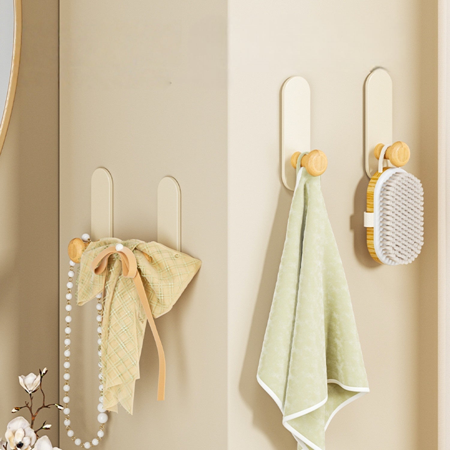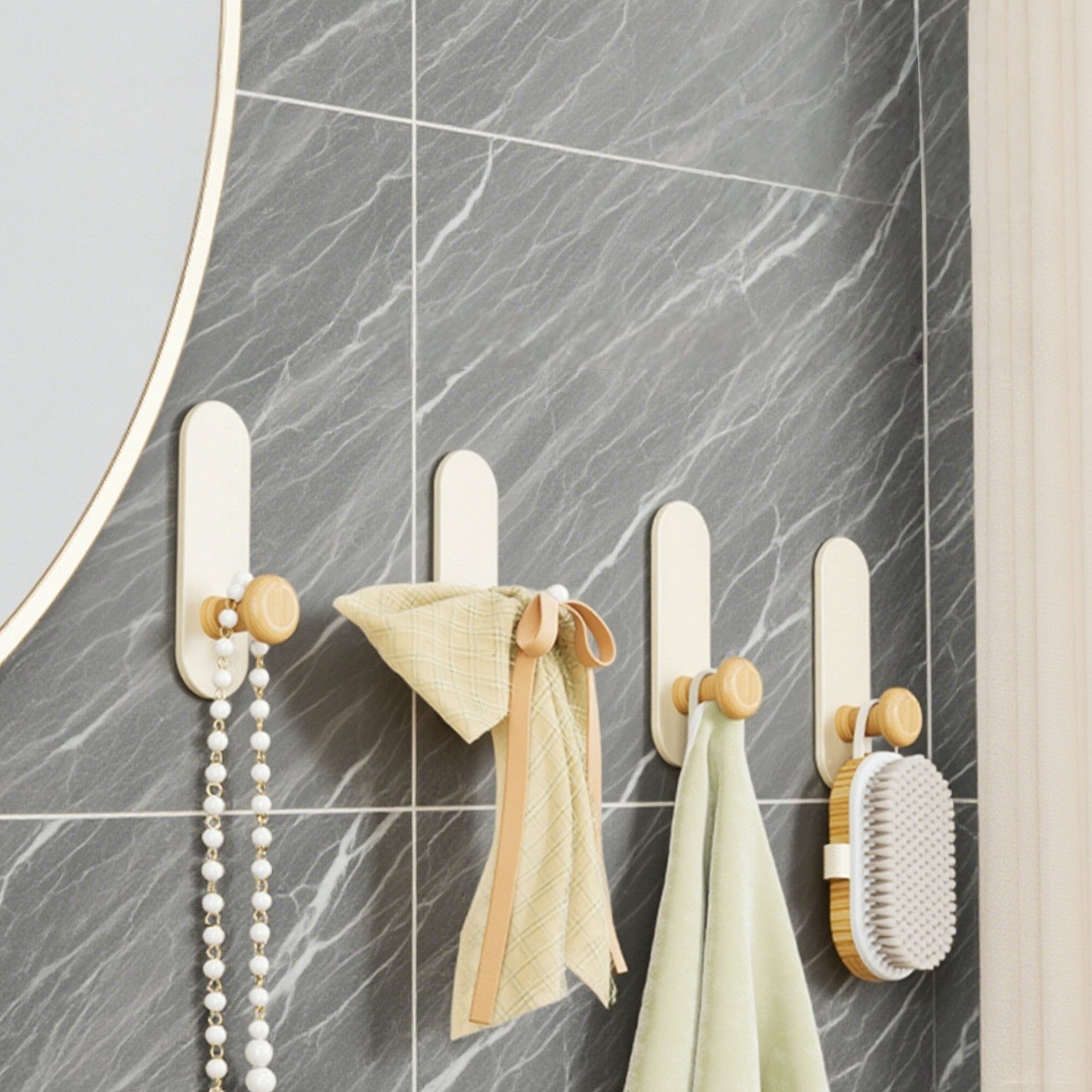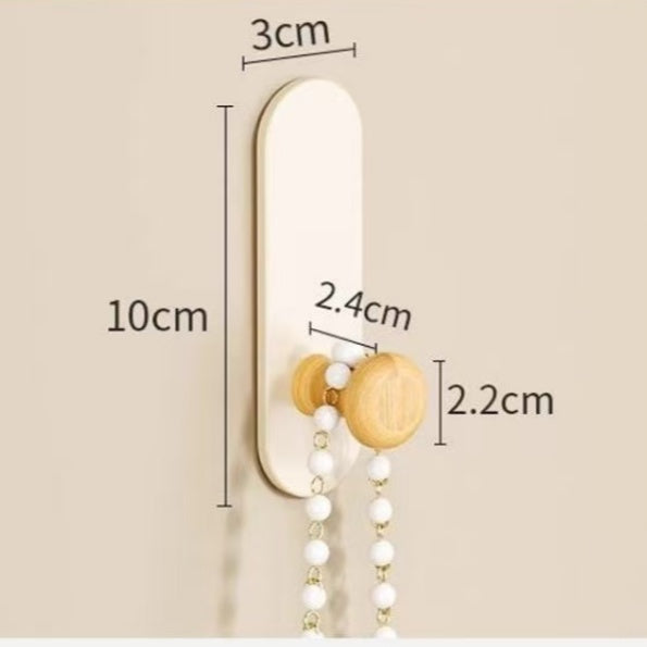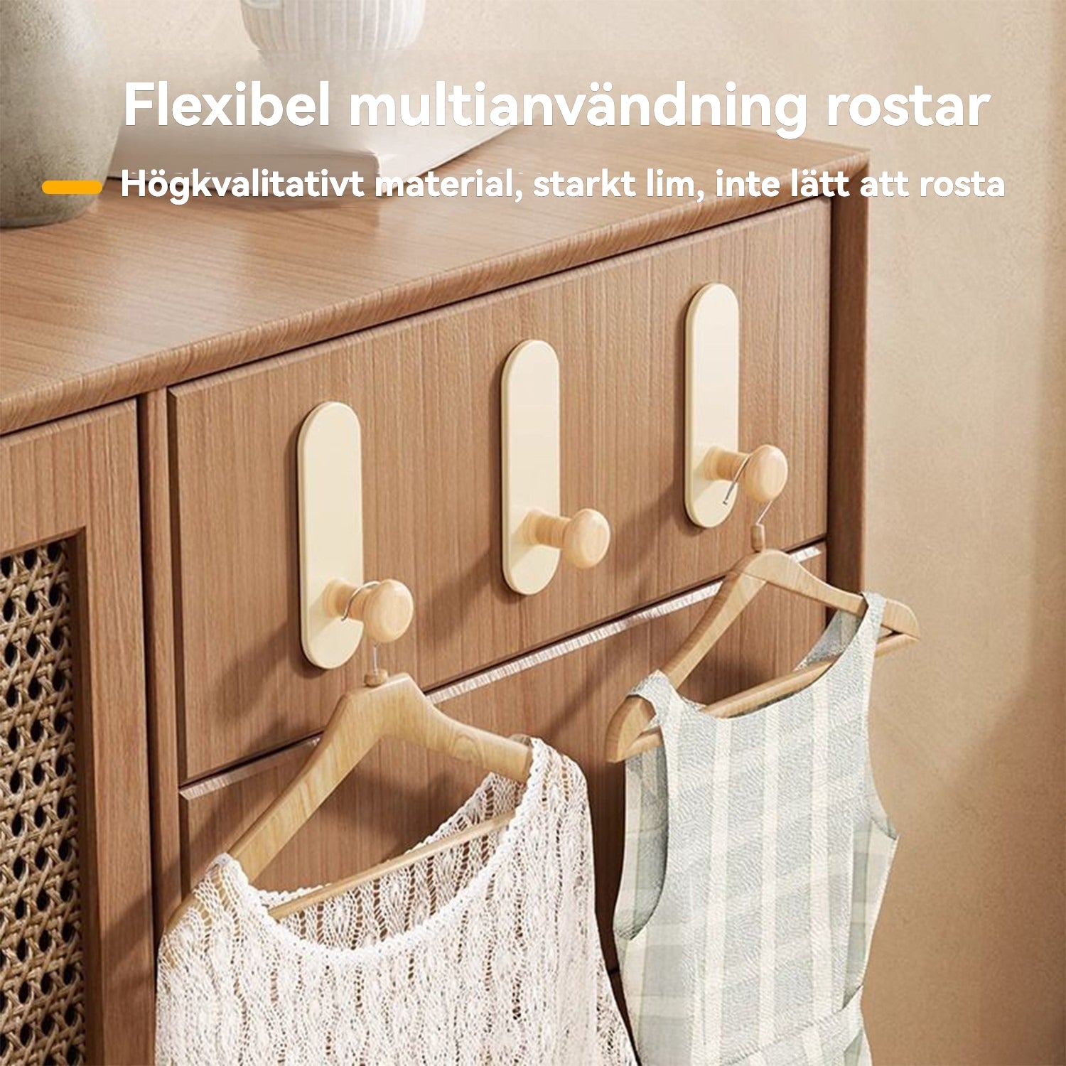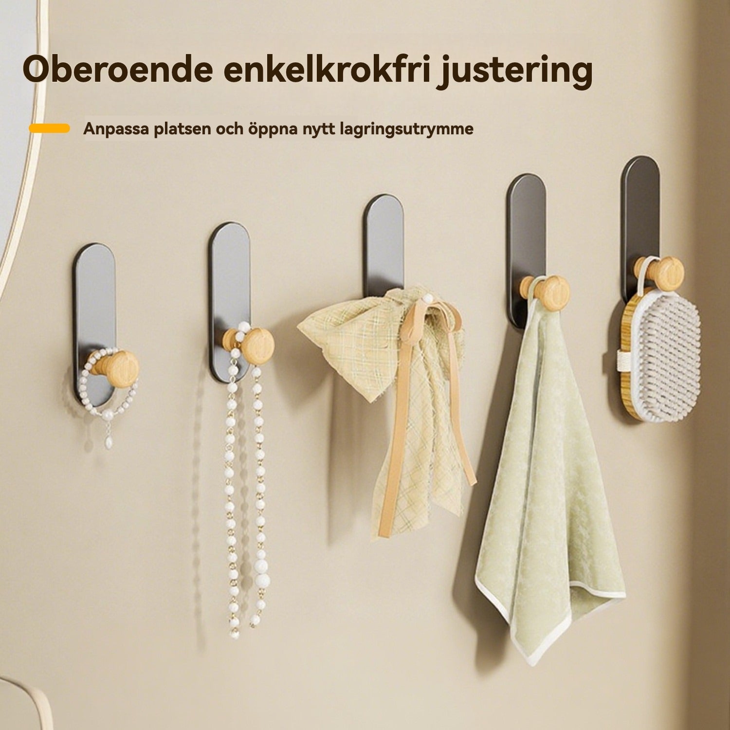 Mångsidig Vägghängd Krok med Träknopp – Fästs Utan Borrhål
