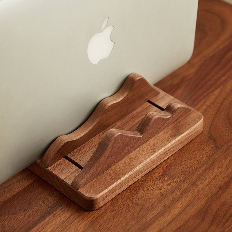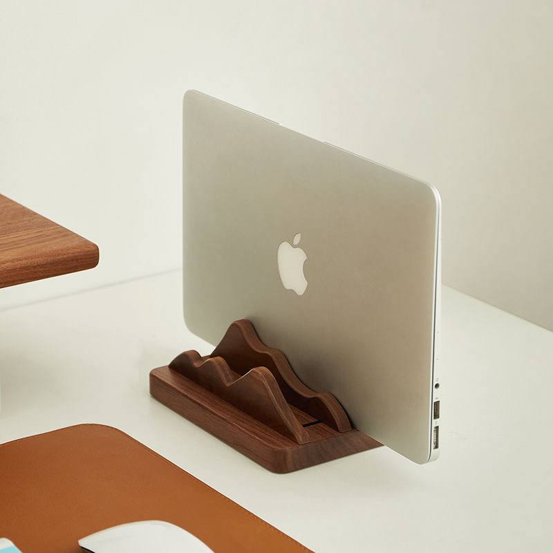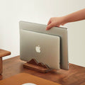 Massiv trähållare för laptop och iPad – vertikal ställning