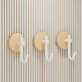 Skapa en ljus och inbjudande känsla i ditt hem med dessa vackra och funktionella väggkrokar. Kombinationen av massivt, ljust trä och en mjukt krämfärgad krok ger en stilren skandinavisk design som passar perfekt i alla rum – från hallen till badrummet och köket.