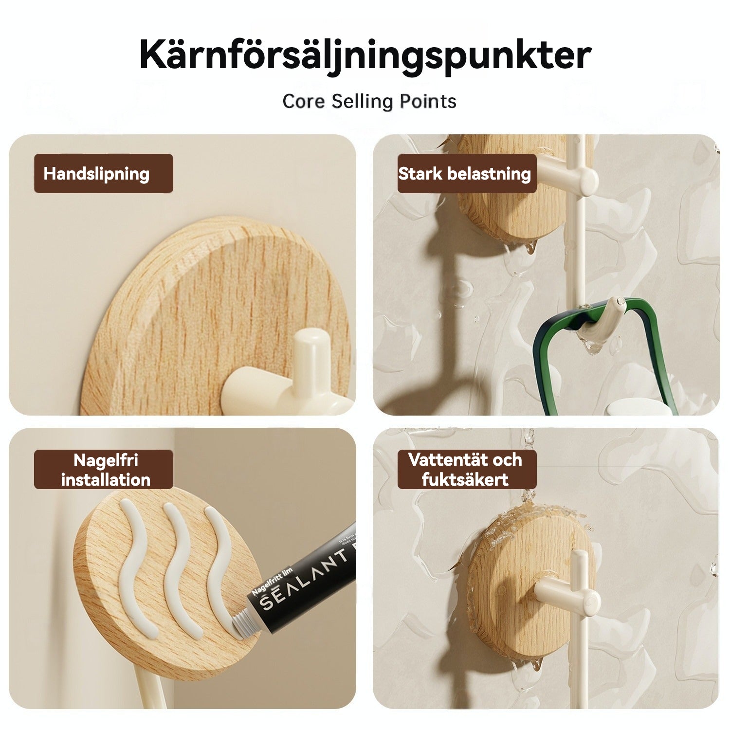 Enkel & Skadefri Installation: Du behöver inte borra! Krokarna monteras enkelt och säkert med det medföljande starka limmet, vilket skyddar dina väggar från hål och skador.