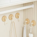 Högkvalitativt material: Tillverkade av tjockt, massivt ljust trä som är handslipat för en mjuk och slät yta. Den robusta metallkroken är lackerad i en elegant, krämfärgad nyans.