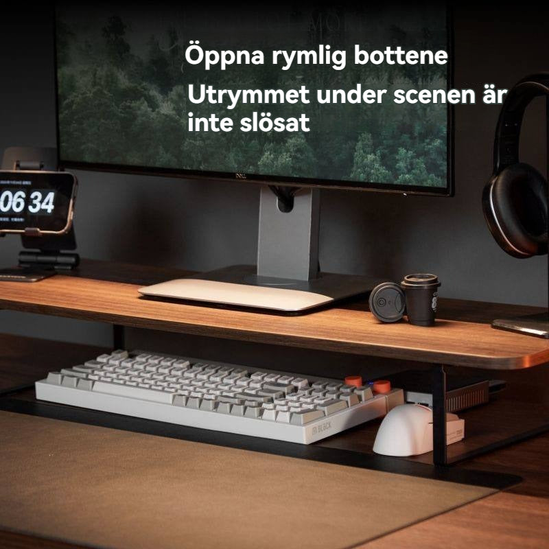 ✔️ Smart förvaringsyta – Utrymme under stativet för tangentbord, mus, böcker eller tillbehör.