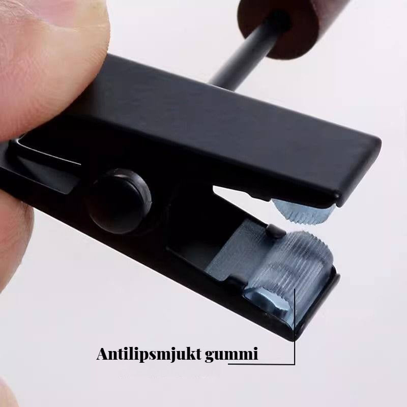 Antihalk-gummiklämma : Sitter stadigt utan att skada tyget.