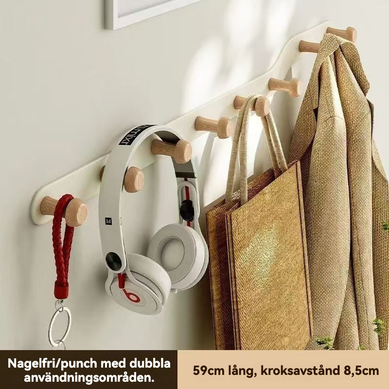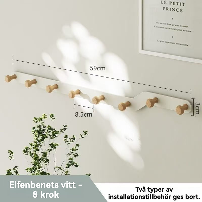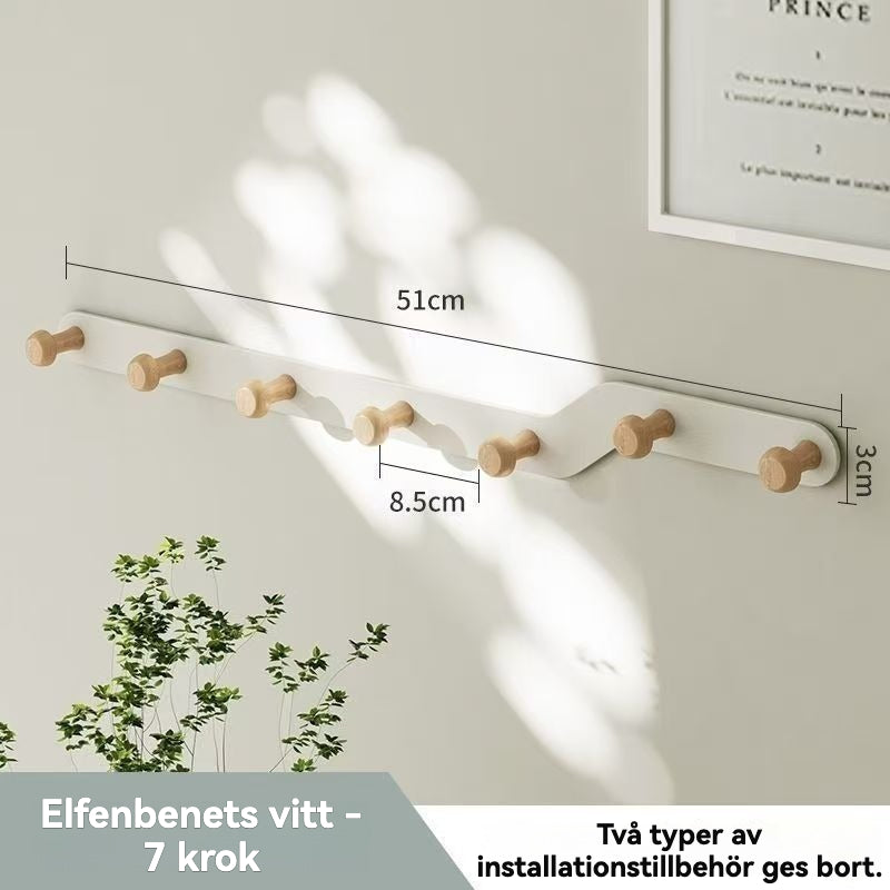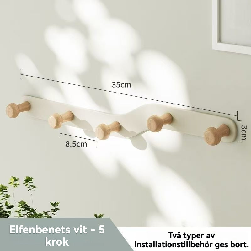Elegant skandinavisk design: Den minimalistiska och organiska formen med släta träkrokar passar perfekt i den moderna inredningen och ger en varm och inbjudande känsla.