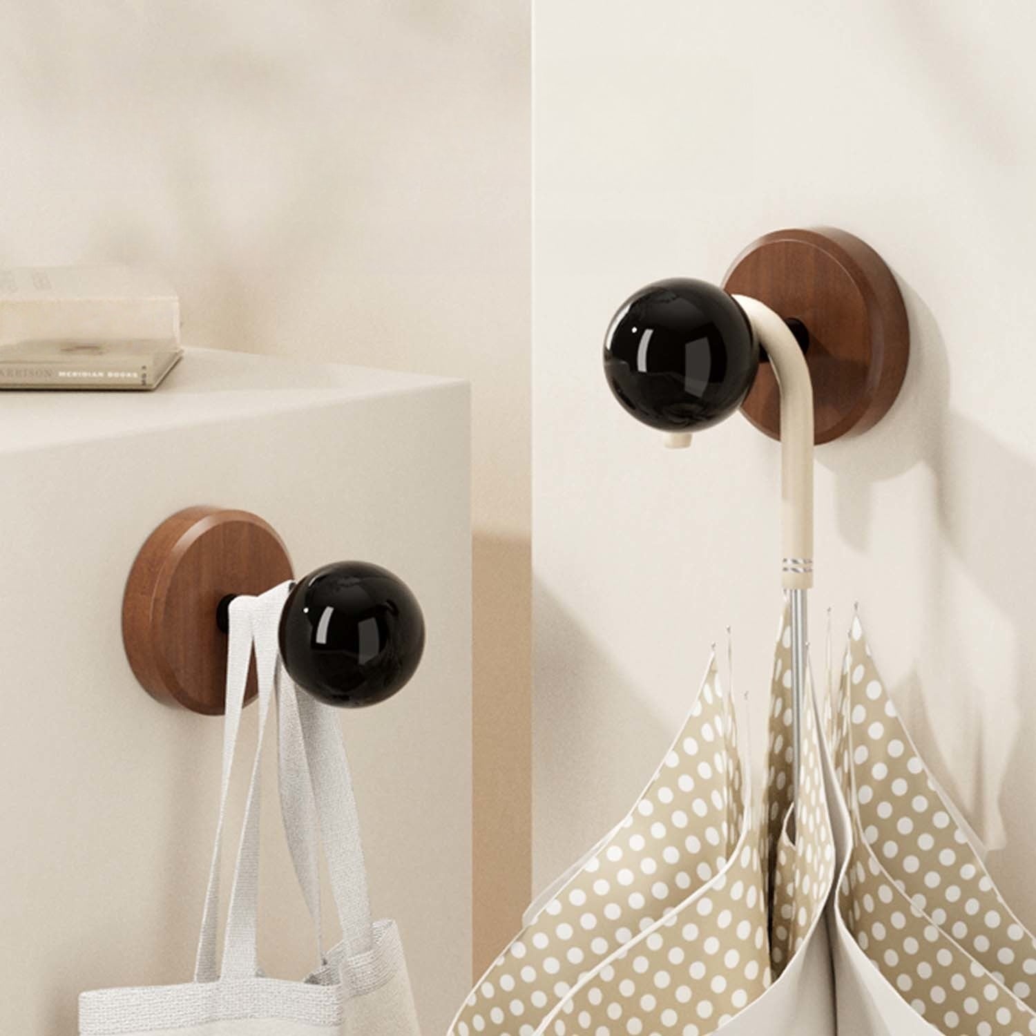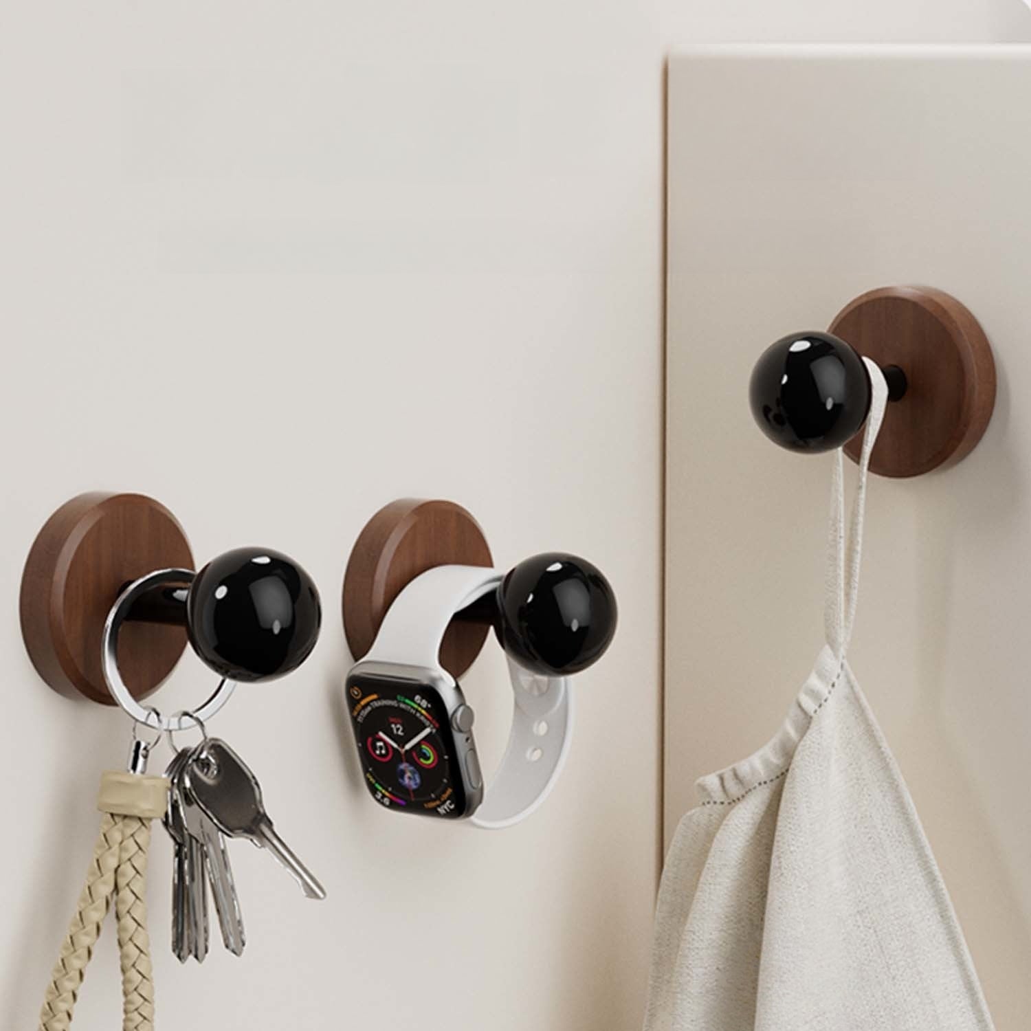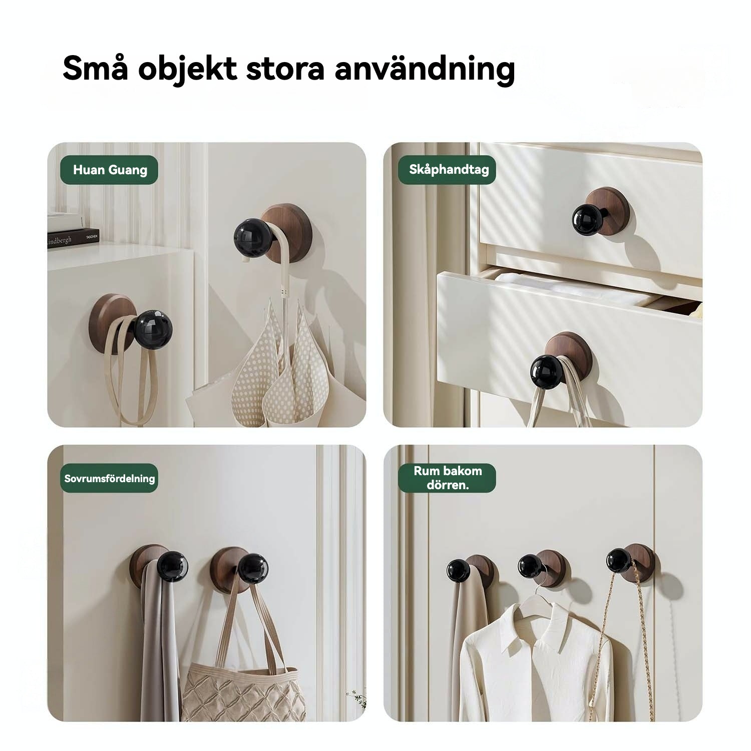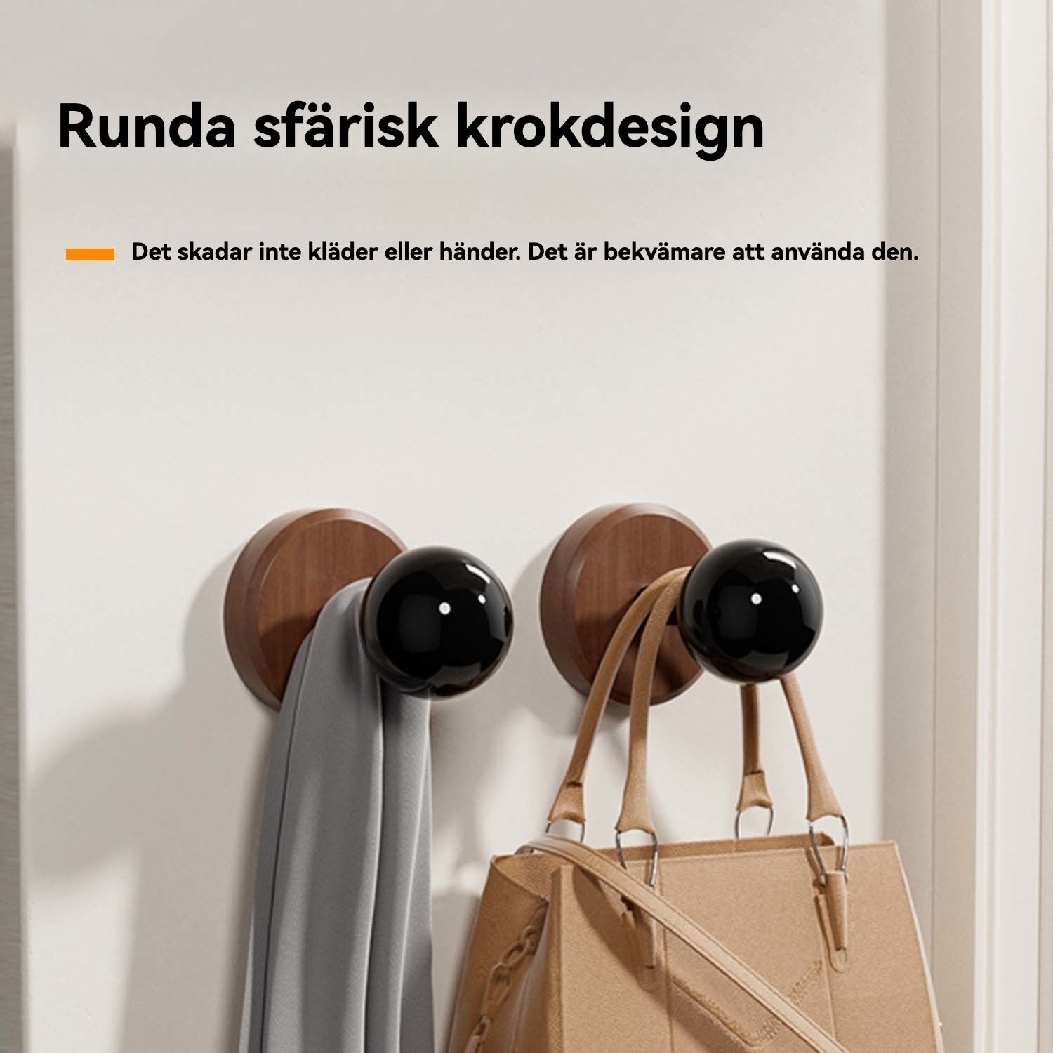 Valnötsfärgade Träkrokar | Hålfria Installation, Stark Bärkapacitet för Hem och Badrum