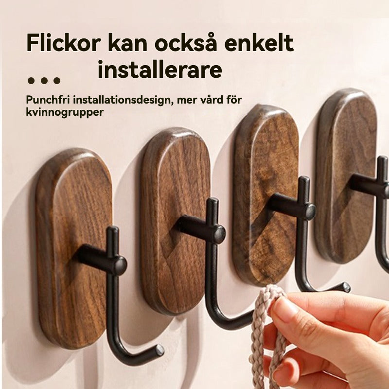 Valnötsfärgade Träkrokar | Stark Bärkapacitet för Badrum, Kök och Hall – Hålfria, Enkel Installation